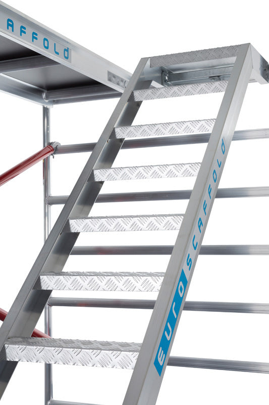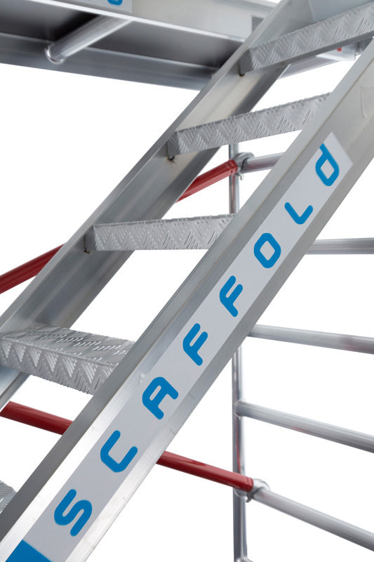 Dankzij deze steigertrap kunt u de rolsteiger veilig en gemakkelijk met gereedschap of materiaal in de handen op lopen. Bovendien geeft de steigertrap nog eens extra stabiliteit aan uw steiger. Geschikt voor rolsteiger met een lengte van 250 cm.