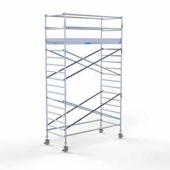 Rolsteiger Euro met een breedte maat van 135 cm en lengtemaat van 305 cm en een werkhoogte van 6,2 meter. Deze rolsteiger staat garant voor gebruiksgemak en een zeer lange levensduur.