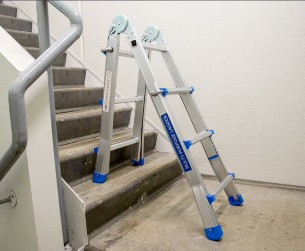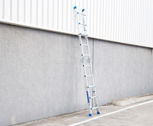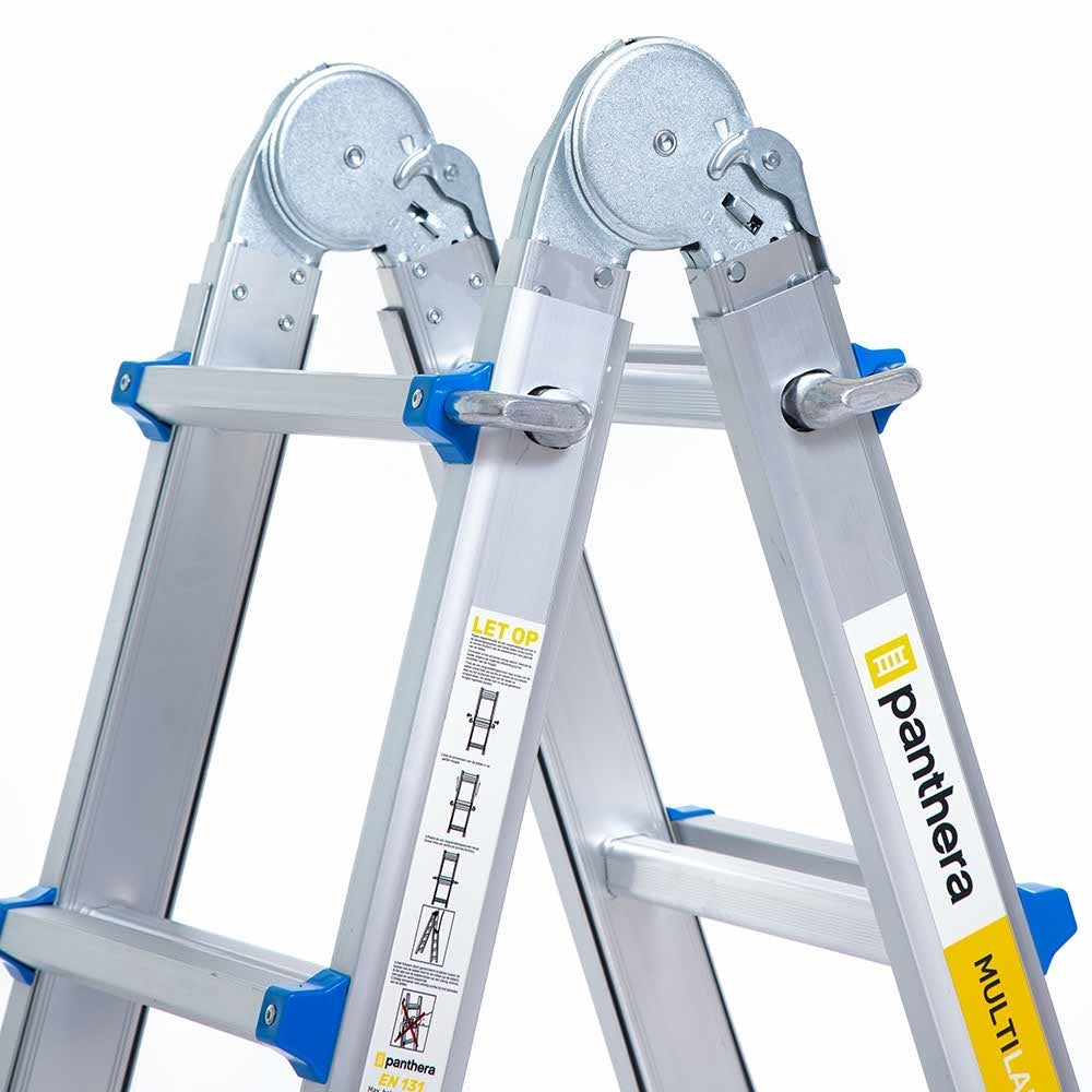 De alles-in-één multifunctionele telescopische vouwladder en trap voor doe-het-zelf klussen . De ladder is per sport instelbaar zodat deze ook gebruikt kan worden op ongelijke ondergrond.
