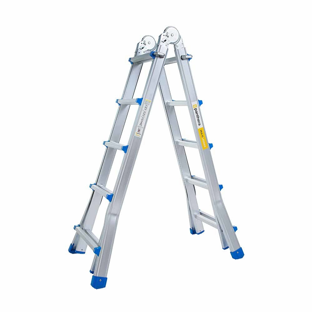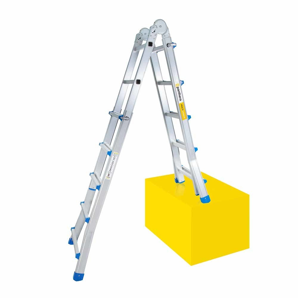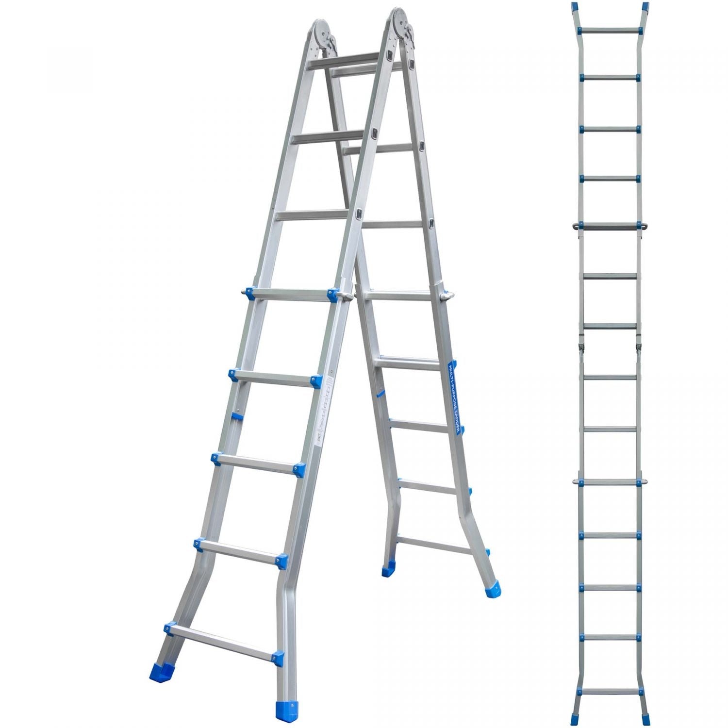 De alles-in-één multifunctionele en telescopische vouwladder en trap voor doe-het-zelf klussen. Te gebruiken als ladder en in hoogte verstelbare trap. Dankzij de compacte maat ook makkelijk op te bergen.
