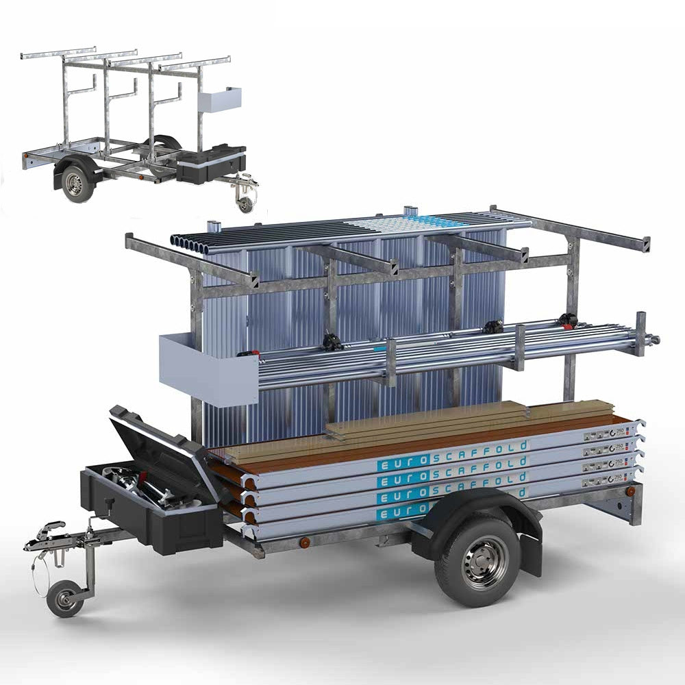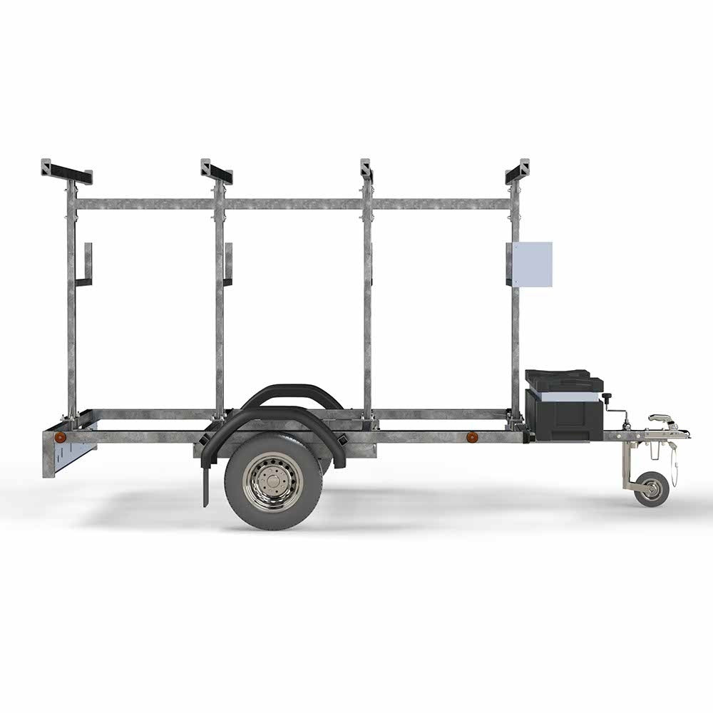 De perfecte oplossing voor het vervoer van uw aluminium rolsteigers.Deze steigeraanhanger kan maar liefst 14 meter aan rolsteiger onderdelen vervoeren met lengtematen tot 250 cm.