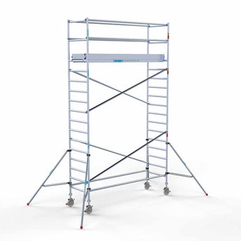 Zeer complete rolsteiger met een breedtemaat van 90 cm , een lengtemaat van 305 cm en een werkhoogte van 6,2 meter.Deze rolsteiger staat garant voor gebruiksgemak en een zeer lange levensduur.