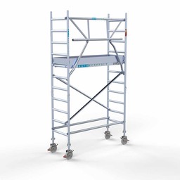 Dit type steiger kan zowel tegen de gevel als vrijstaand gebruikt worden. Hiervoor beschikt deze steiger over tweezijdige voorloopleuningen waardoor het valgevaar geminimaliseerd wordt. Daarnaast geeft het de rolsteiger extra stabiliteit en stevigheid, waardoor u met een gerust gevoel de klus kunt uitvoeren, volledig conform de EN 1004.